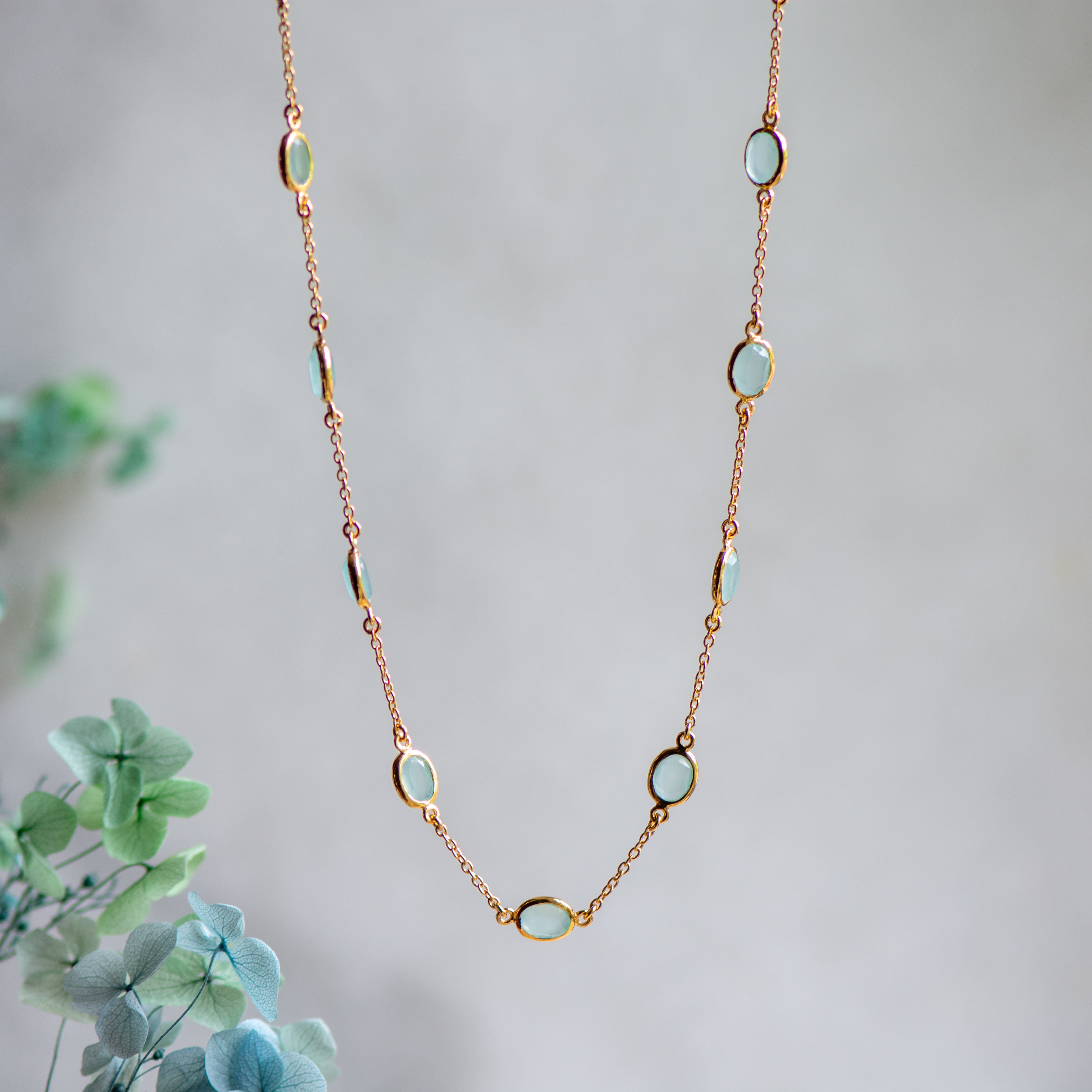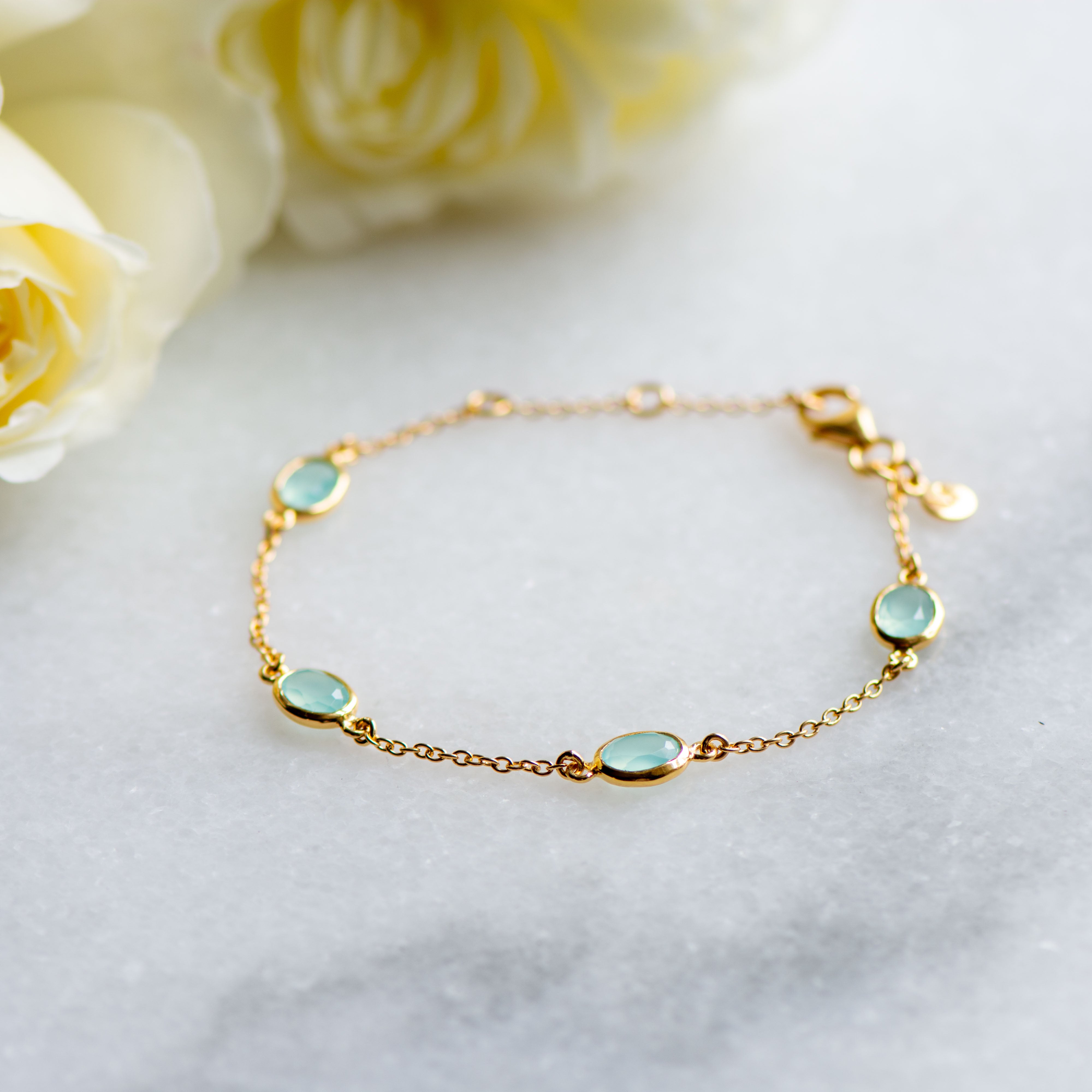The Marilyn necklace and bracelet in Gold with aqua chalcedony make the perfect combination.