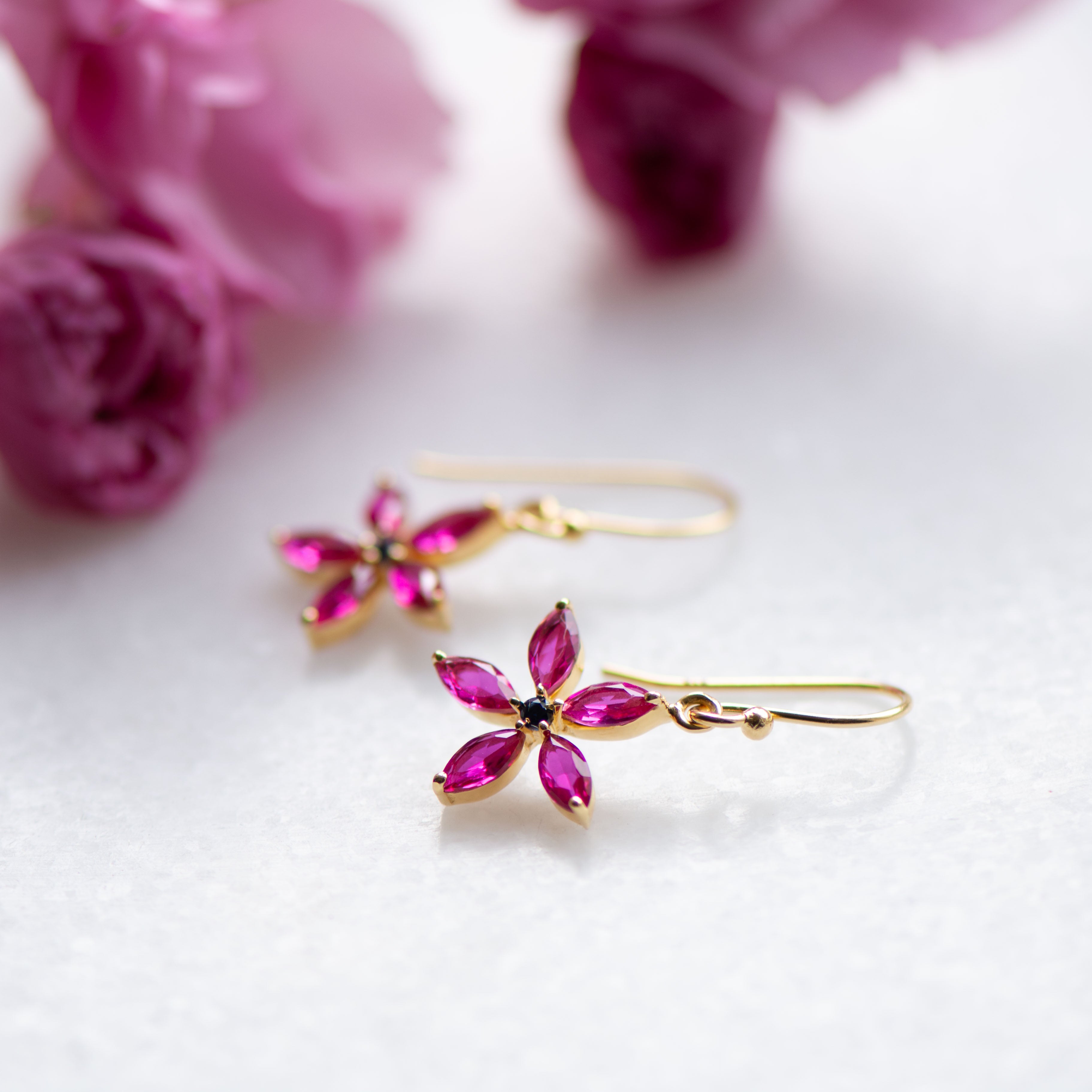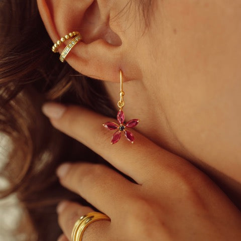 Blossom Drop Earrings in Gold with Ruby and Sapphire Zirconia