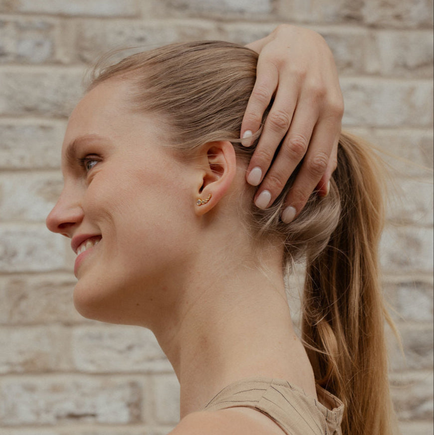 A small glittering climber that is the perfect addition to any ear - impossibly cool and lovely. Wear with caution.