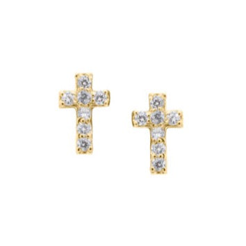 Cross studs with white Cubic Zirconia and screw back