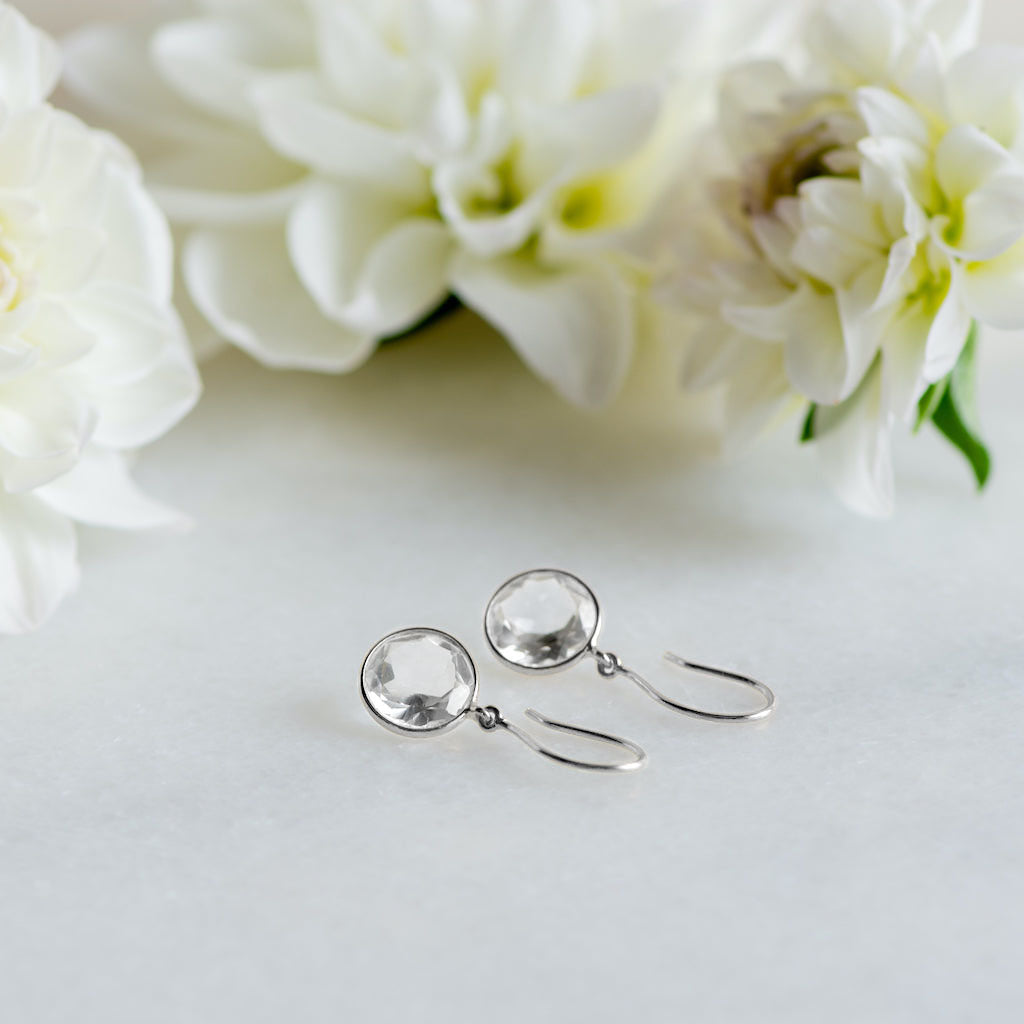 A simple circular crystal drop. These gemstone earrings make any outfit sparkle!