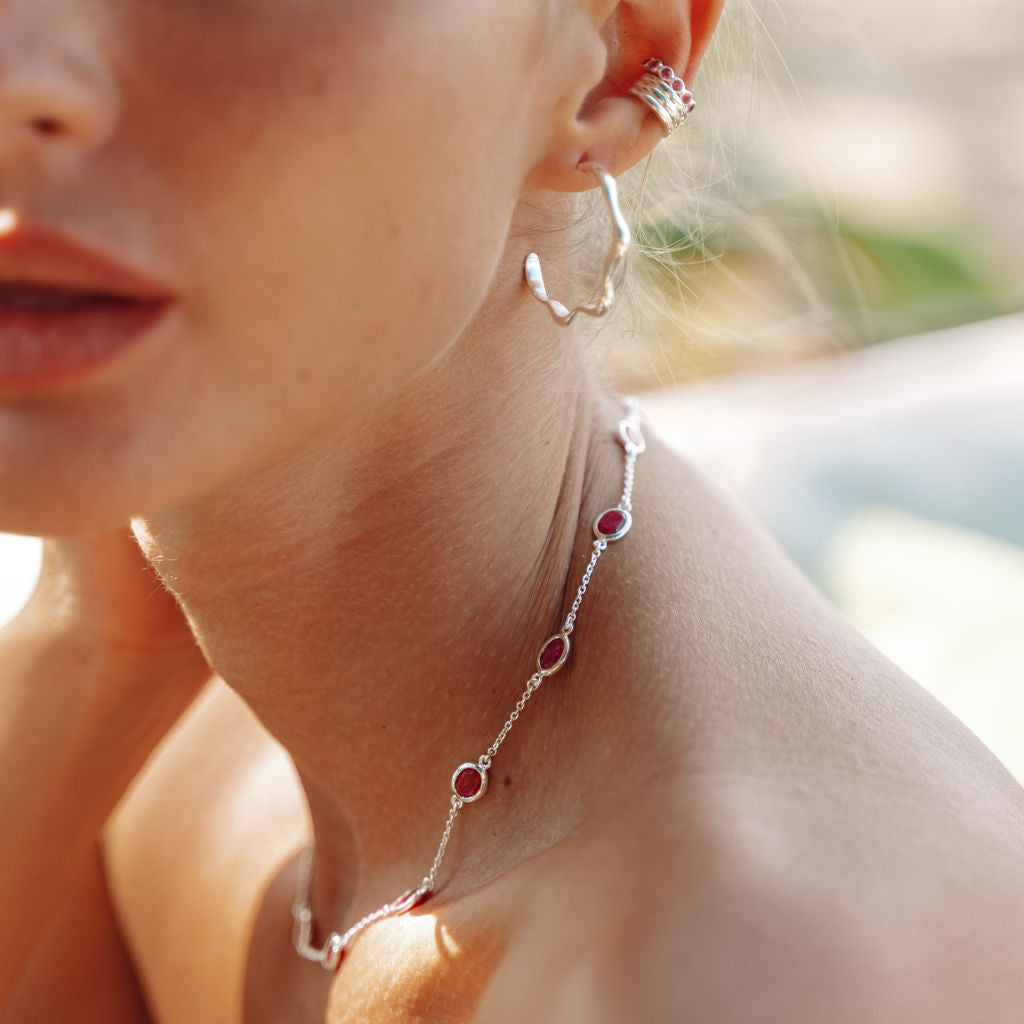 RiRi Gemstone Cuff in Silver with Ruby Zirconia