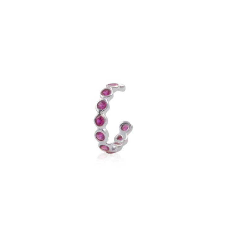This stunning cuff is a semi circle of eleven ruby zirconia stones. It's simply beautiful making any ear the definition of chic.