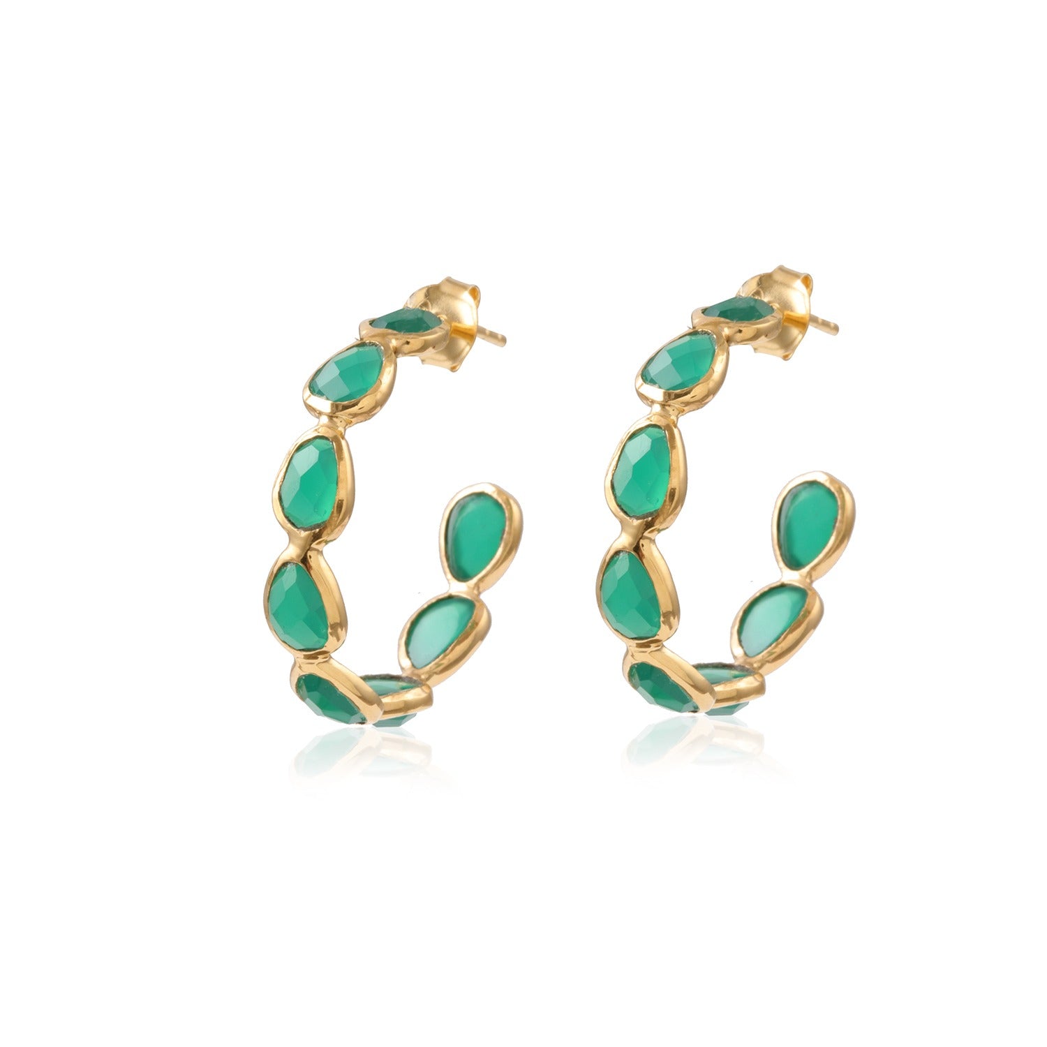 These gorgeous green onyx hoops hang perpendicular to the lobe. Every stone is different, making each pair unique - just like you!