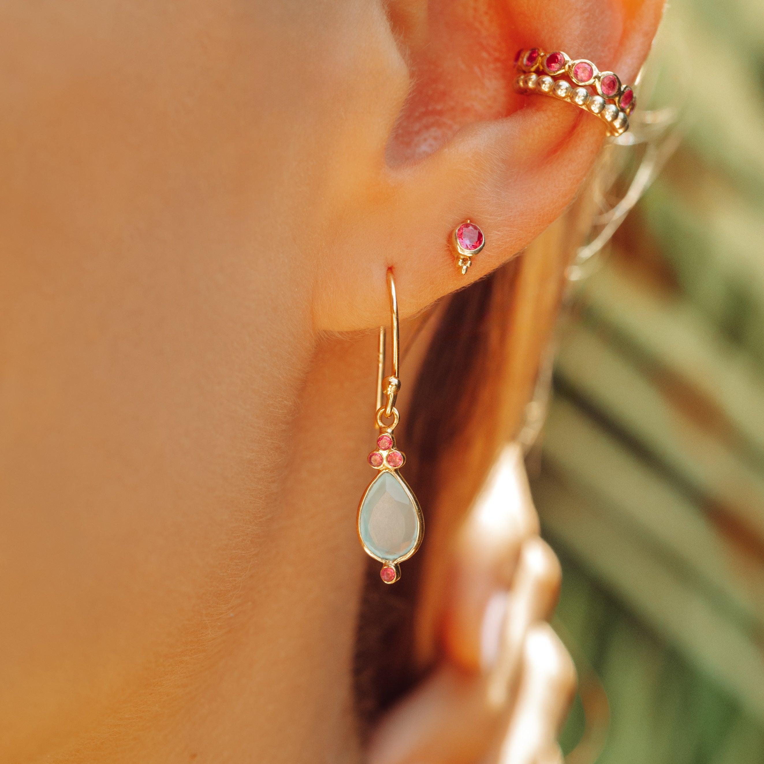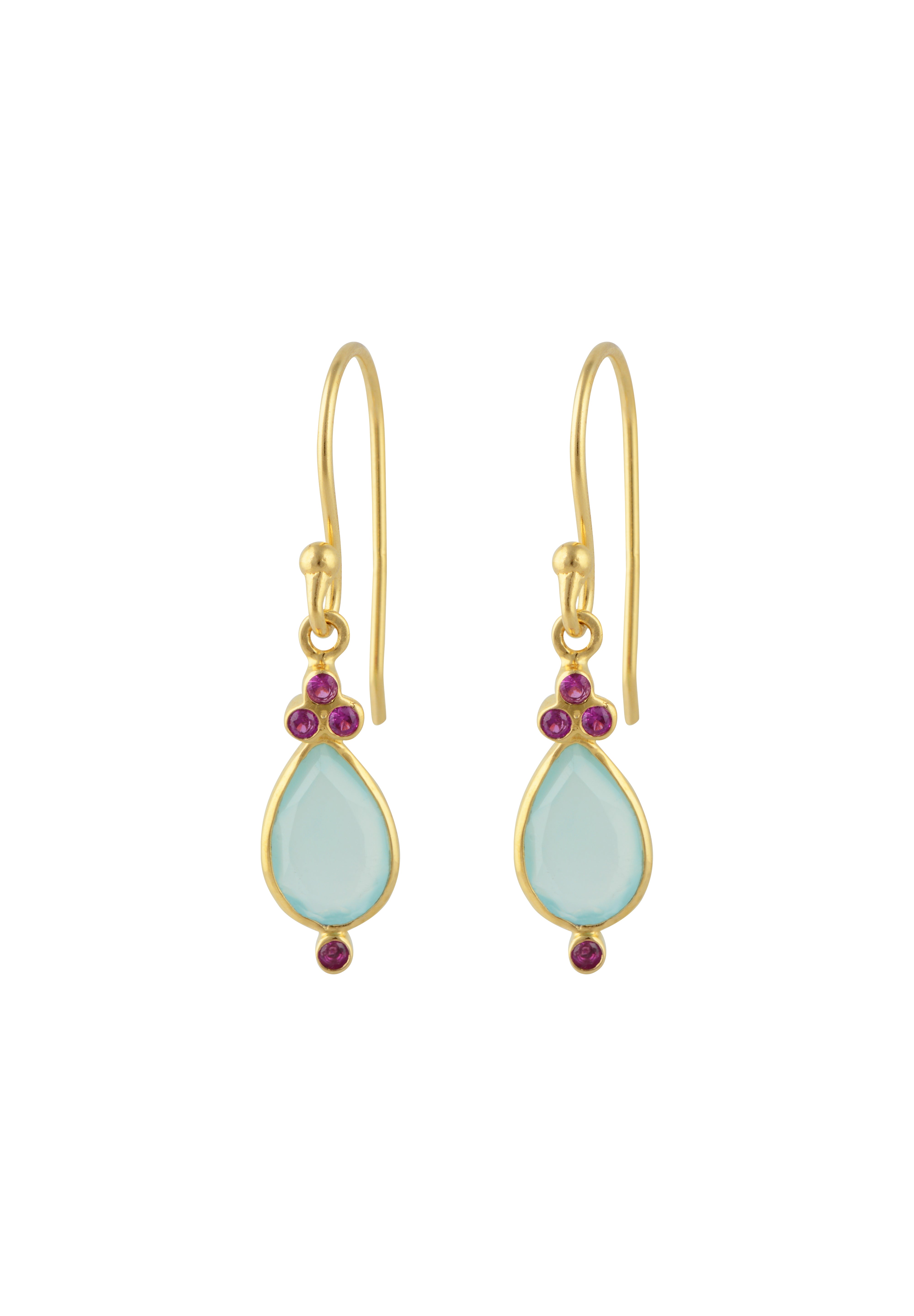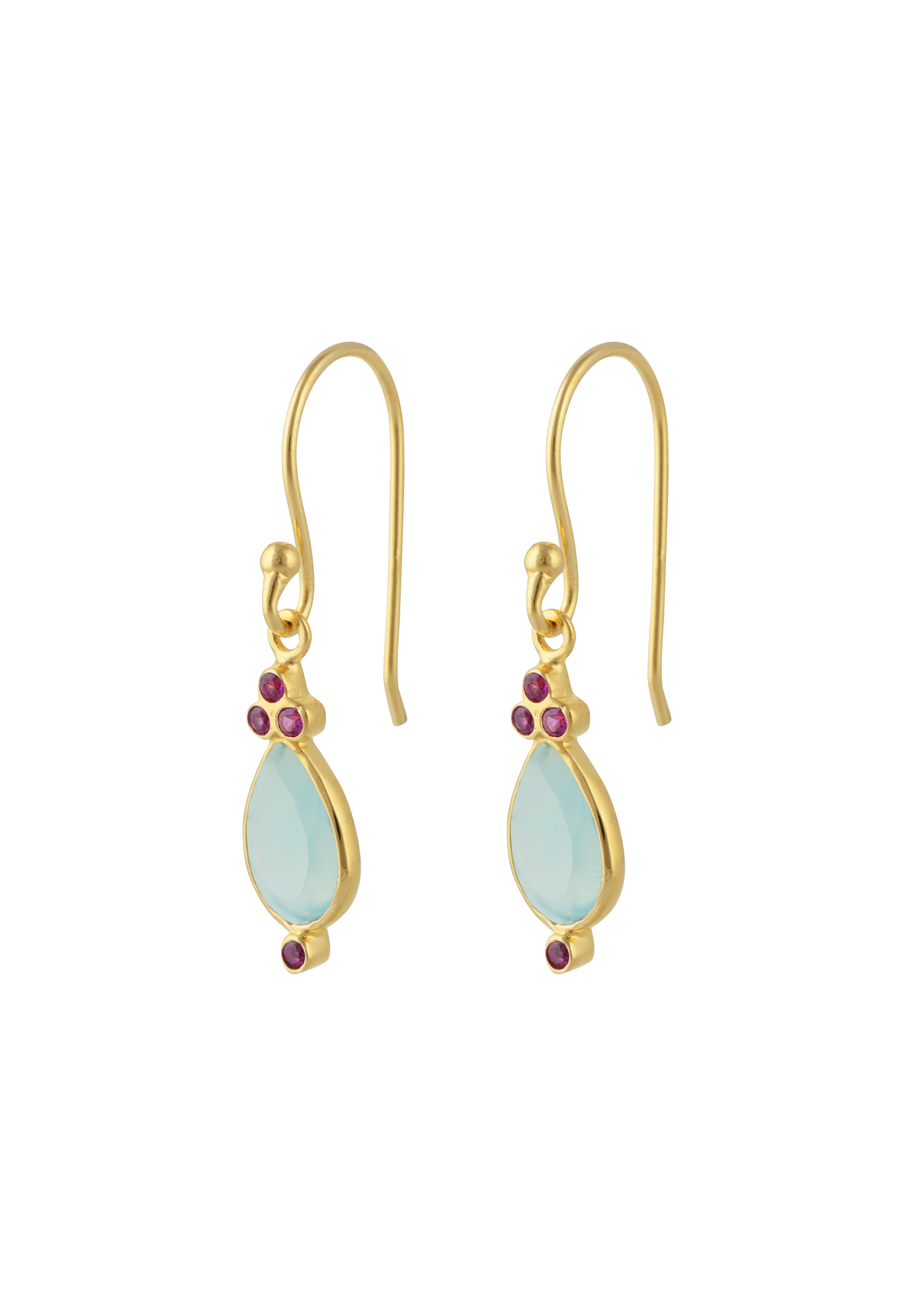 Juniper Drops in Aqua chalcedony and Ruby zirconia
