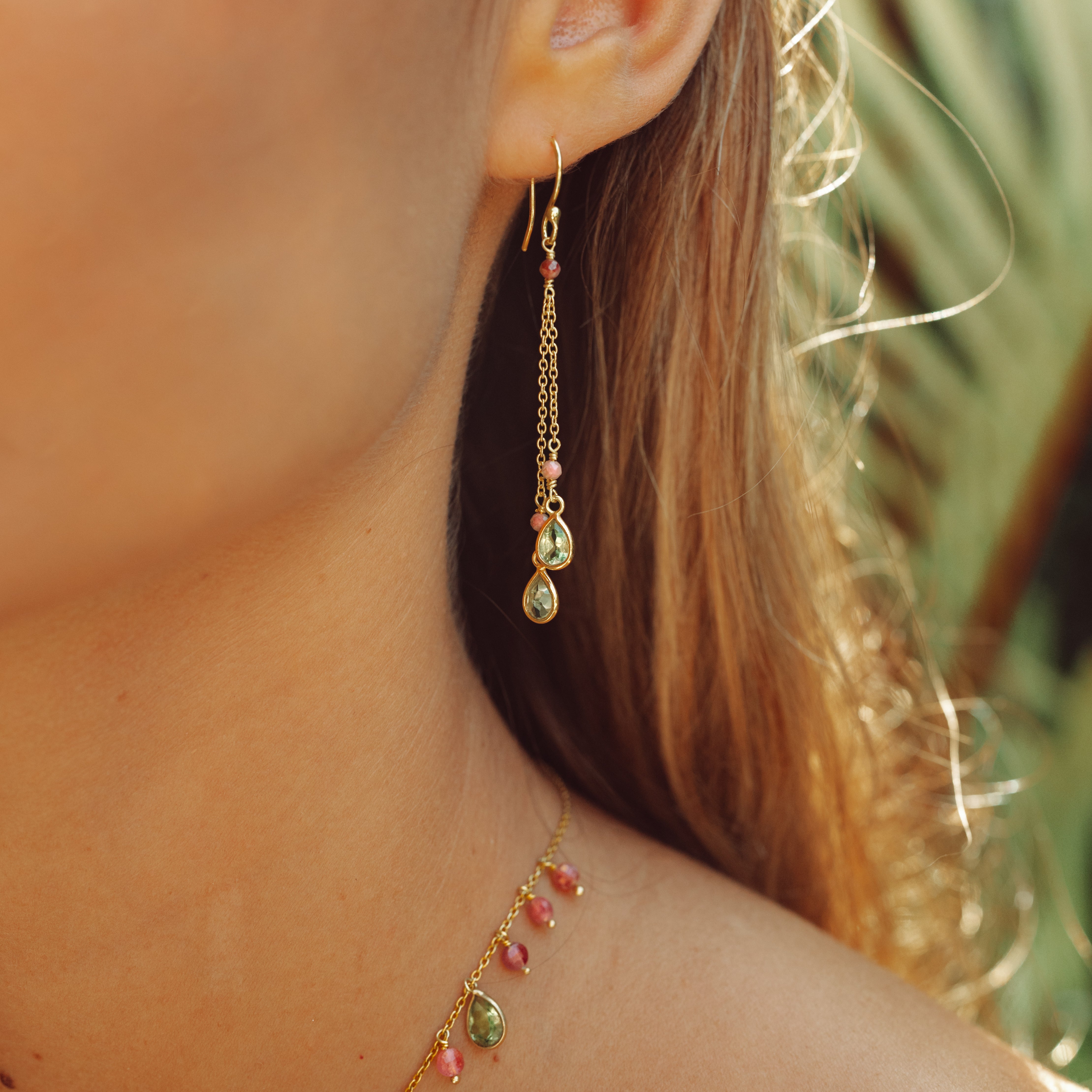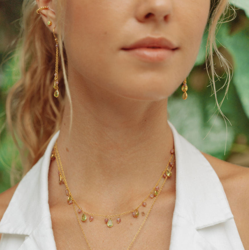 Kiki Necklace in Peridot and Pink Tourmaline & with Matching Kiki Dual Earrings