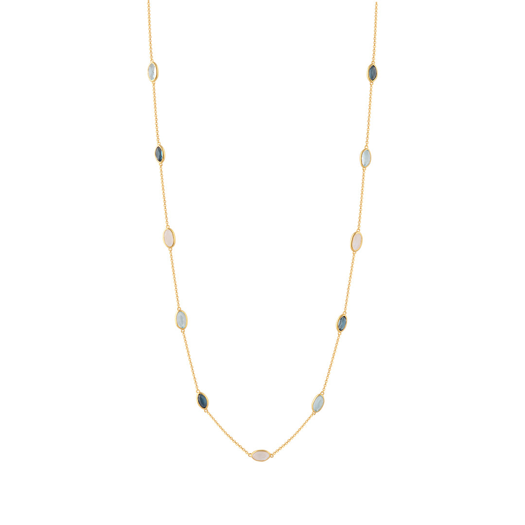 Lola Necklace in Gold with London Blue Topaz, Sky Blue Topaz and Rainbow Moonstone