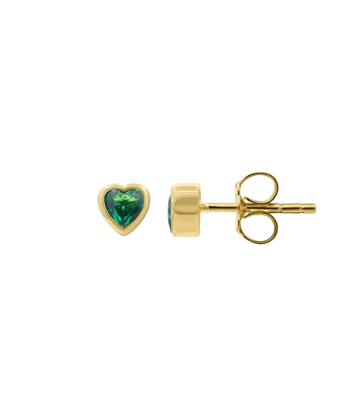 Simple but stunning pair of heart shaped ear studs with an emerald cubic zirconia gemstone. Give your ears a little love!