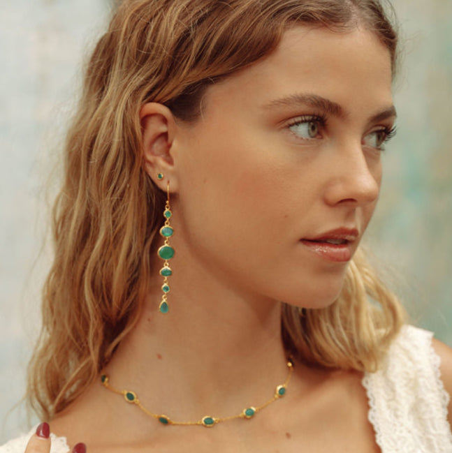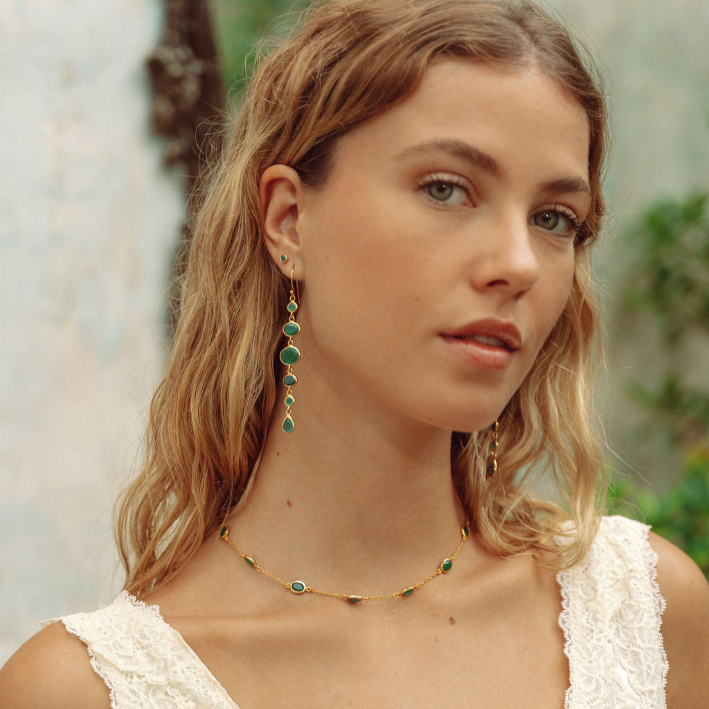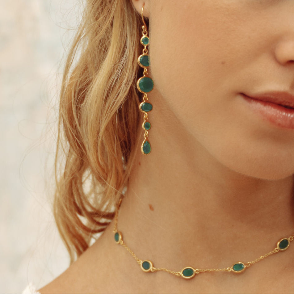 Marilyn Necklace and Cascade Earrings in Gold with Green Onyx