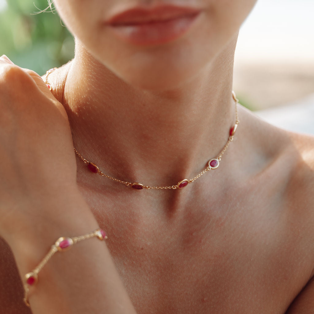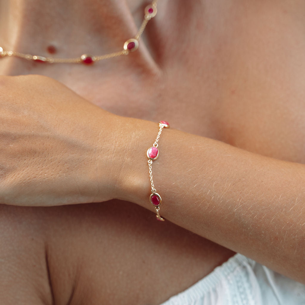 Marilyn Necklace & Bracelet in Gold with Ruby Quartz