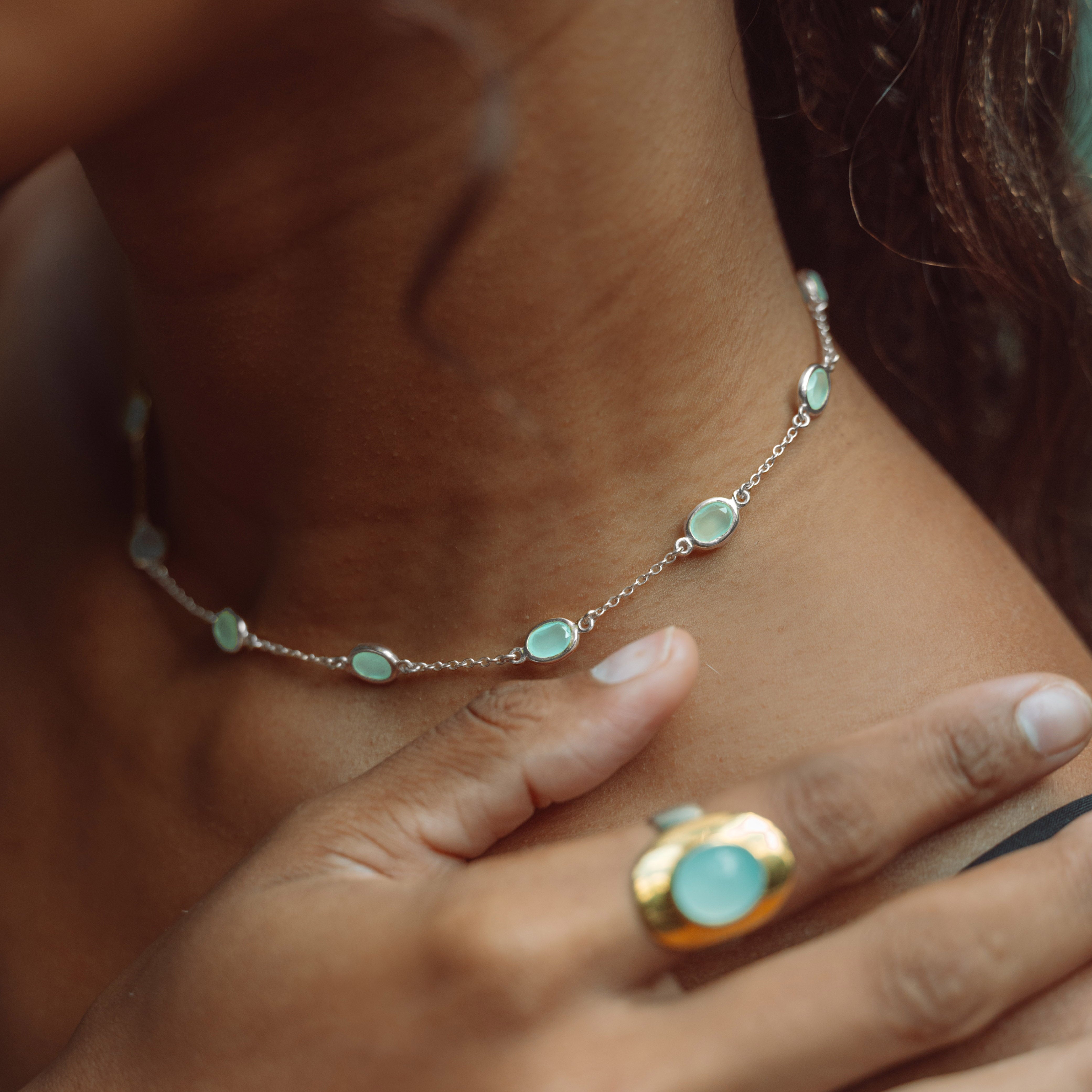 Marilyn Necklace in Silver with Aqua Chalcedony