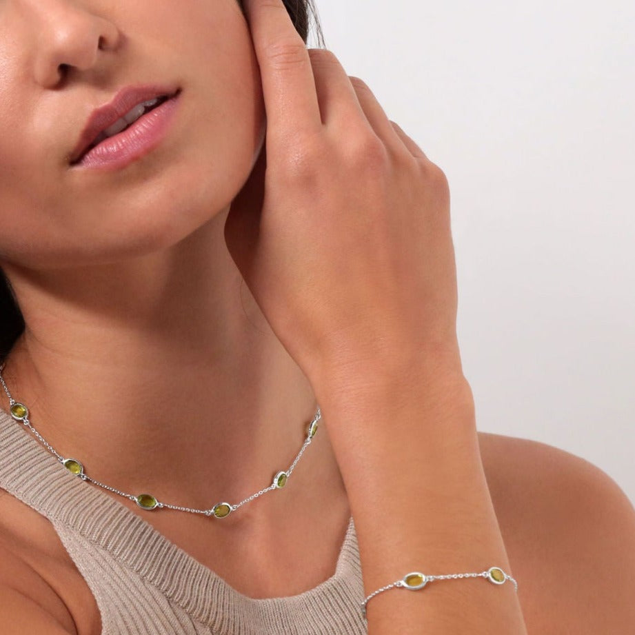 The Marilyn Necklace in Silver with Peridot is glamorous, stylish and eye catching. A classy necklace that adds a touch of colour.