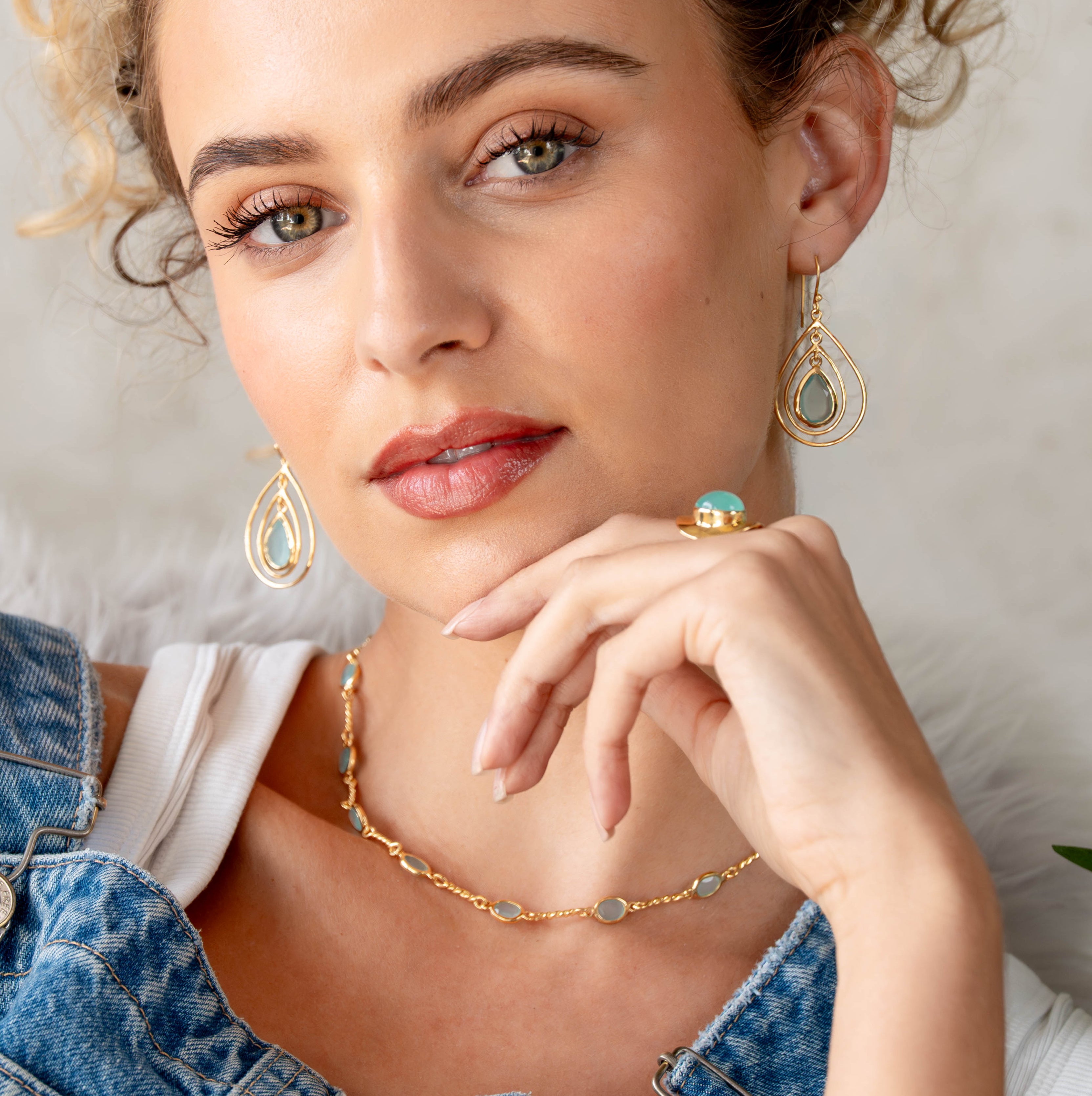 Marilyn's Muse Necklace in Gold with Aqua Chalcedony