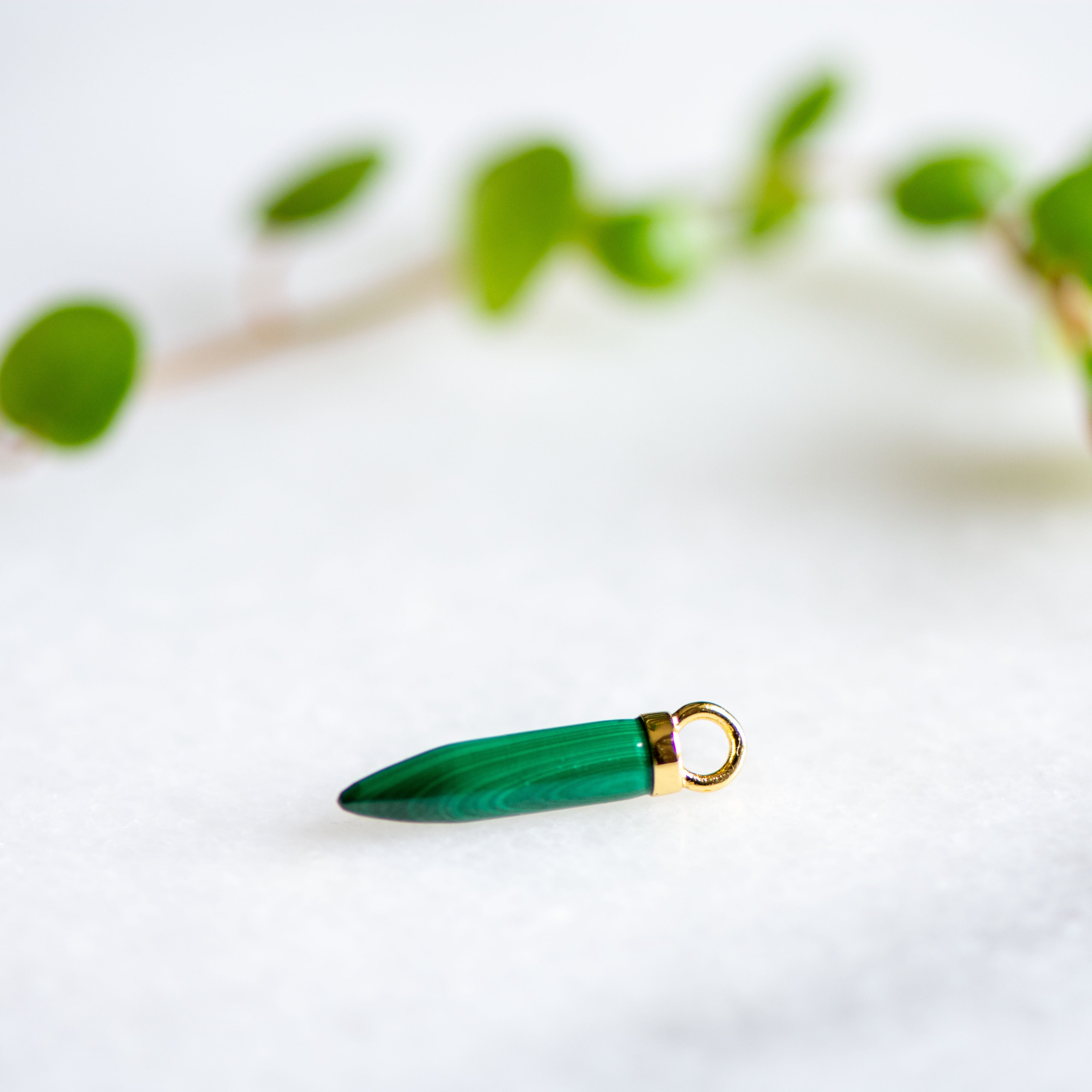 An Icicle of malachite to add to your necklace stack. Eye catching and known to attract love!