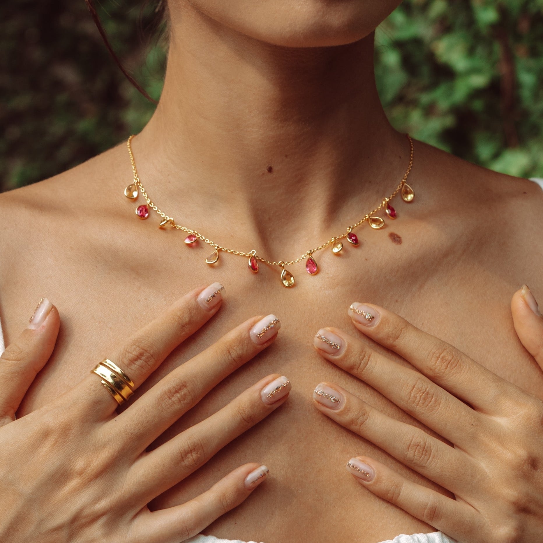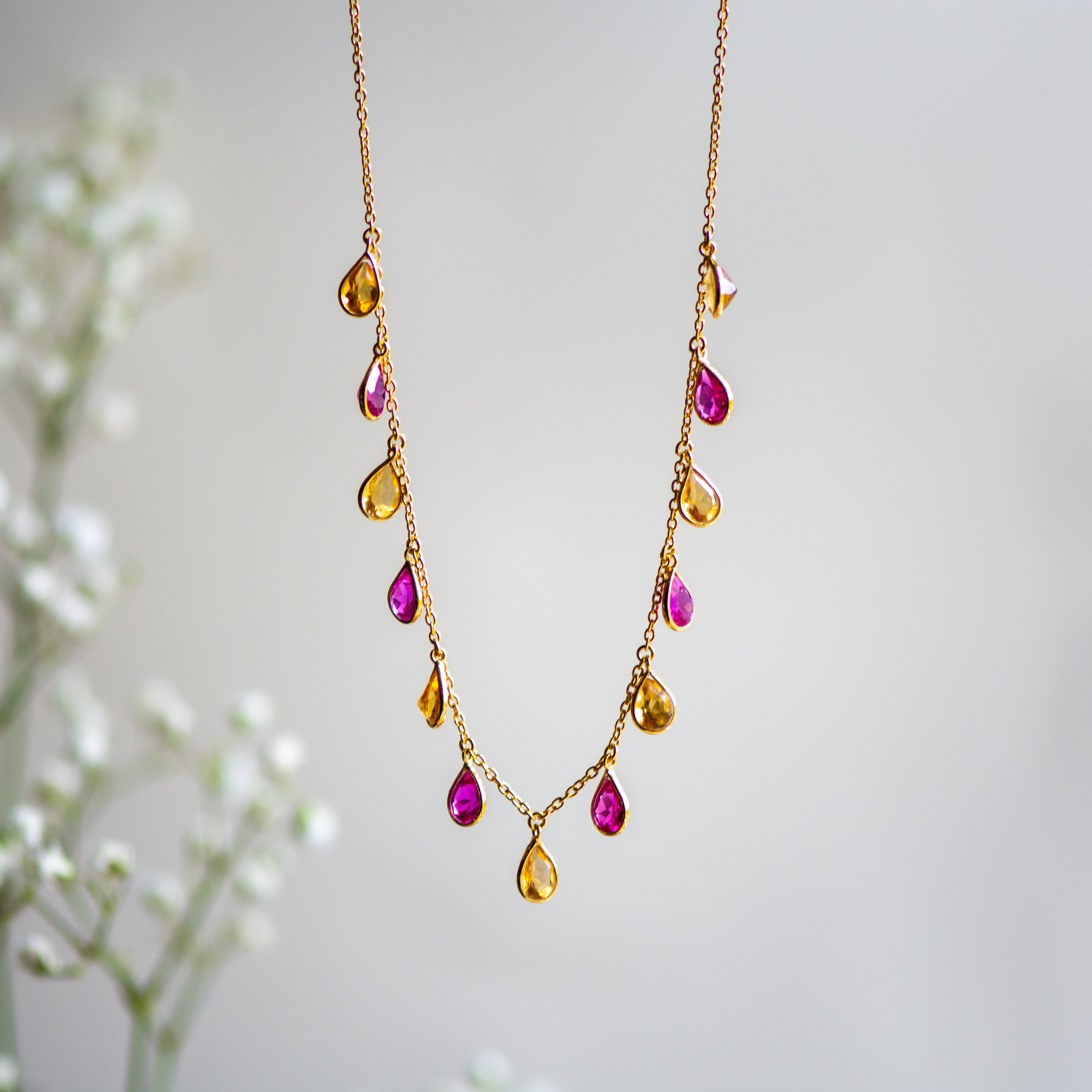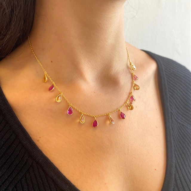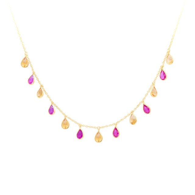 Pear Drop Necklace in Citrine and Created Pink Sapphire