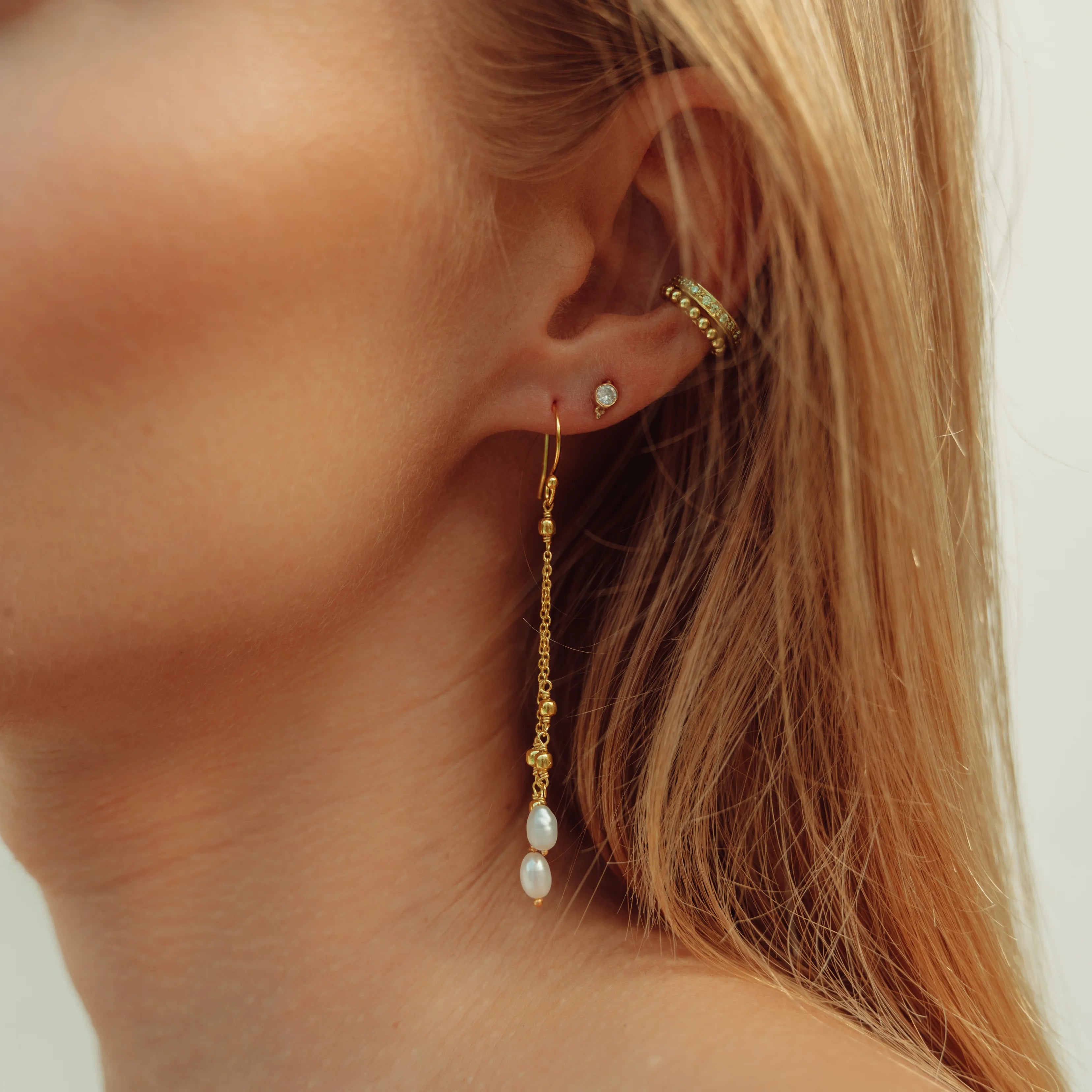 A dual of pearls hanging subtly and beautifully. Different, unusual and unspeakably glamorous.