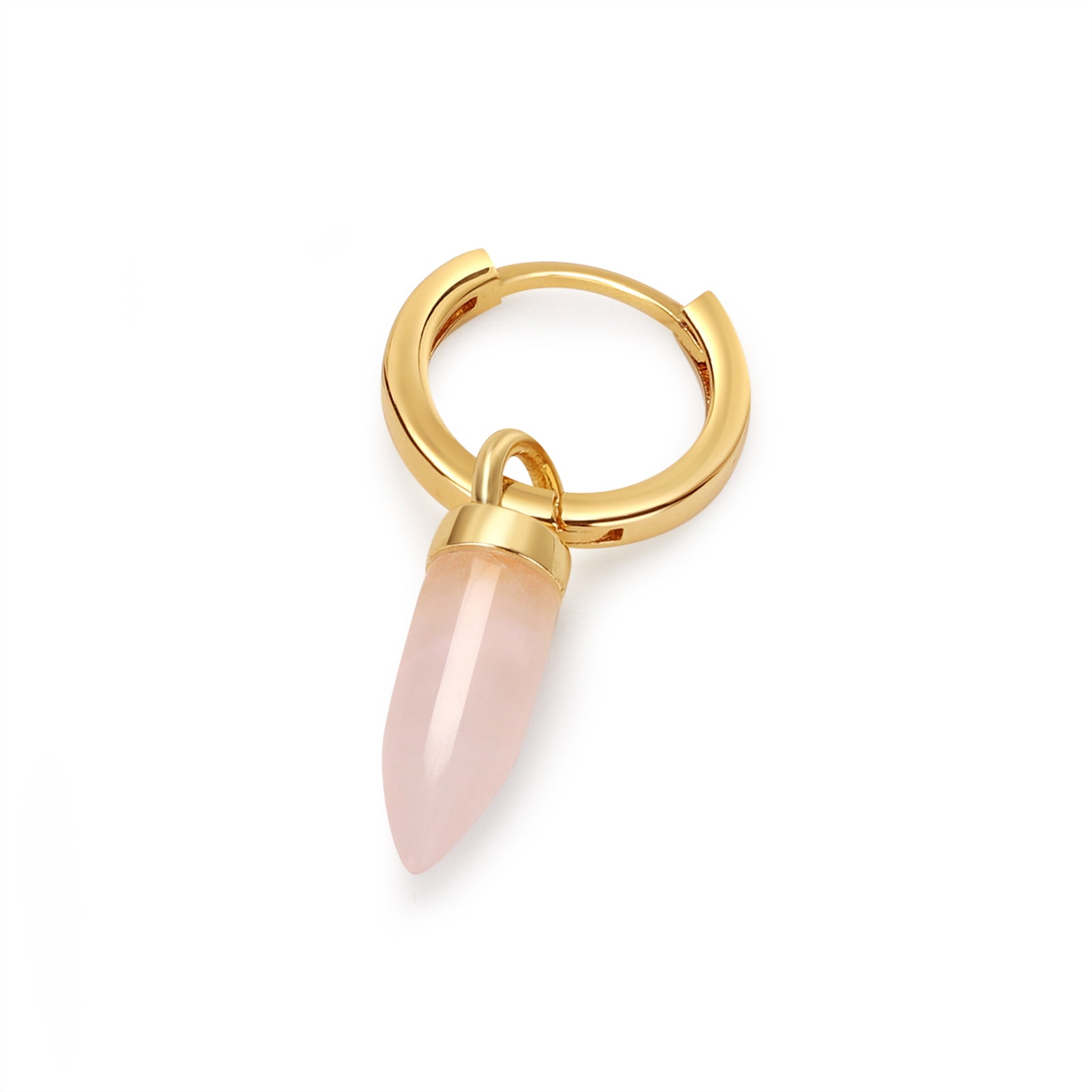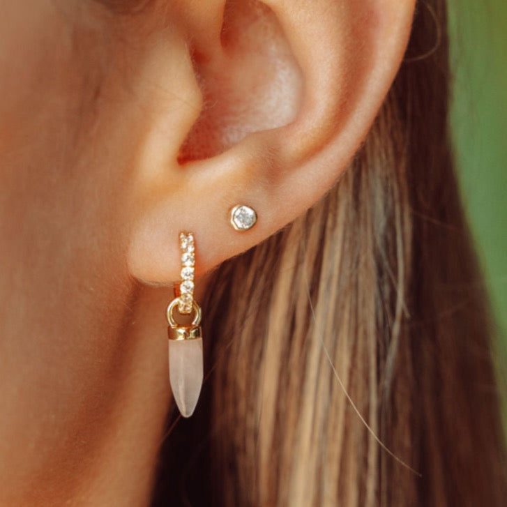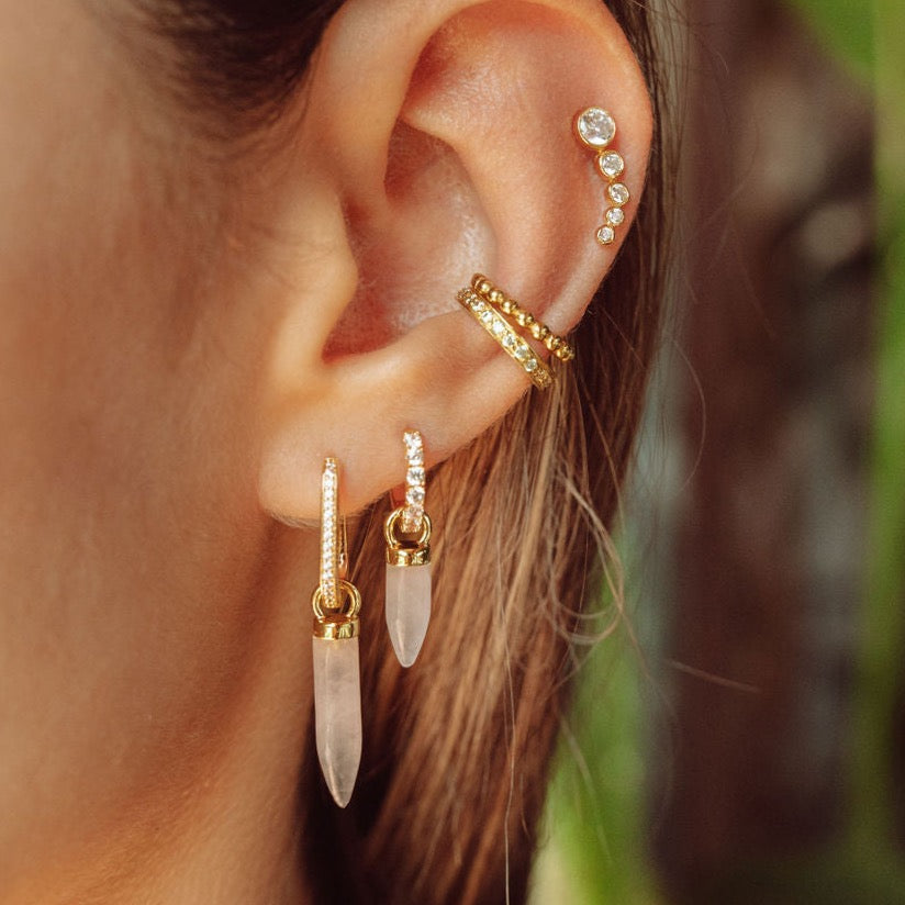 A simple rose quartz drop to keep you well. Rose quartz is known to be a healing crystal and believed to emit strong vibrations of love. The charm to add to your ear stack!