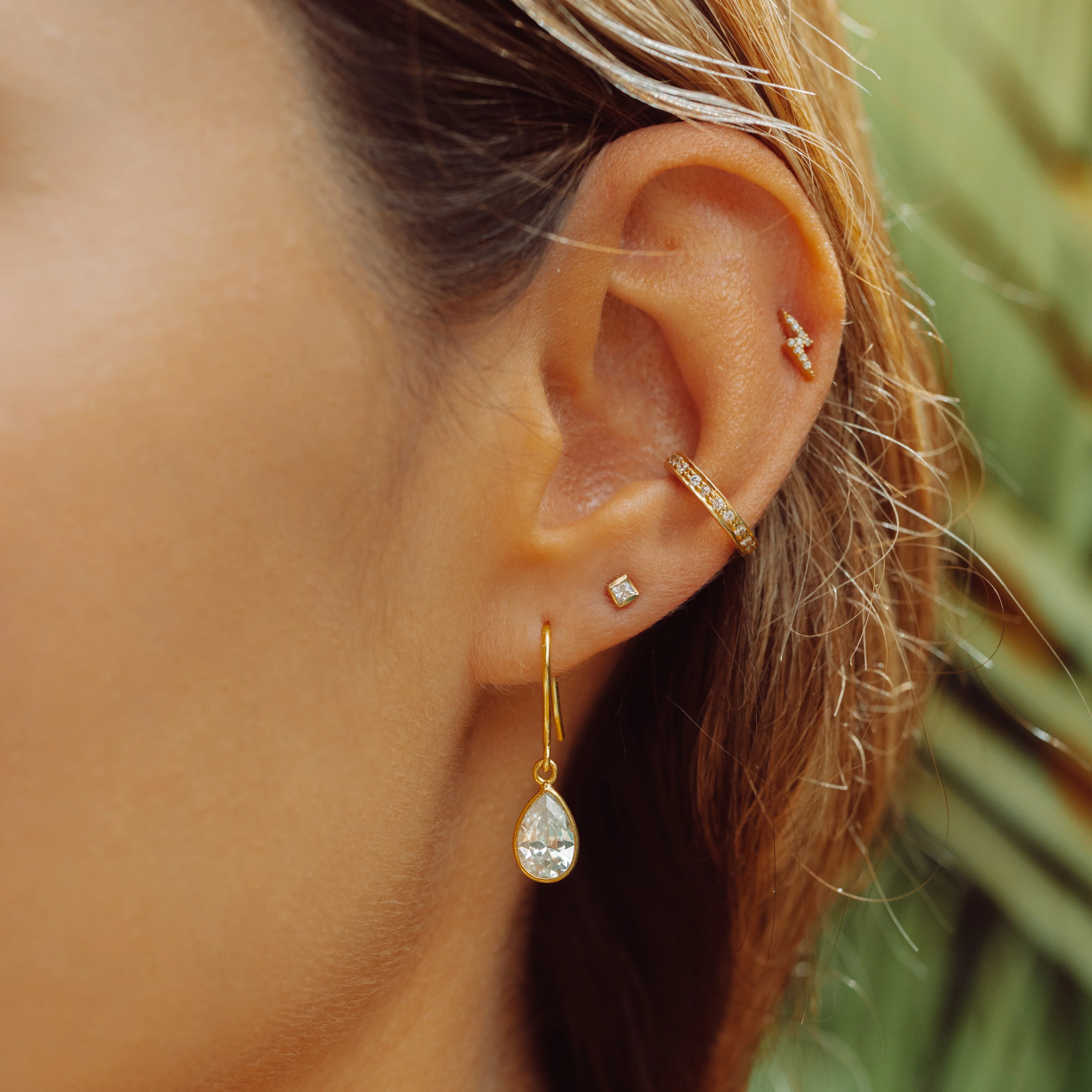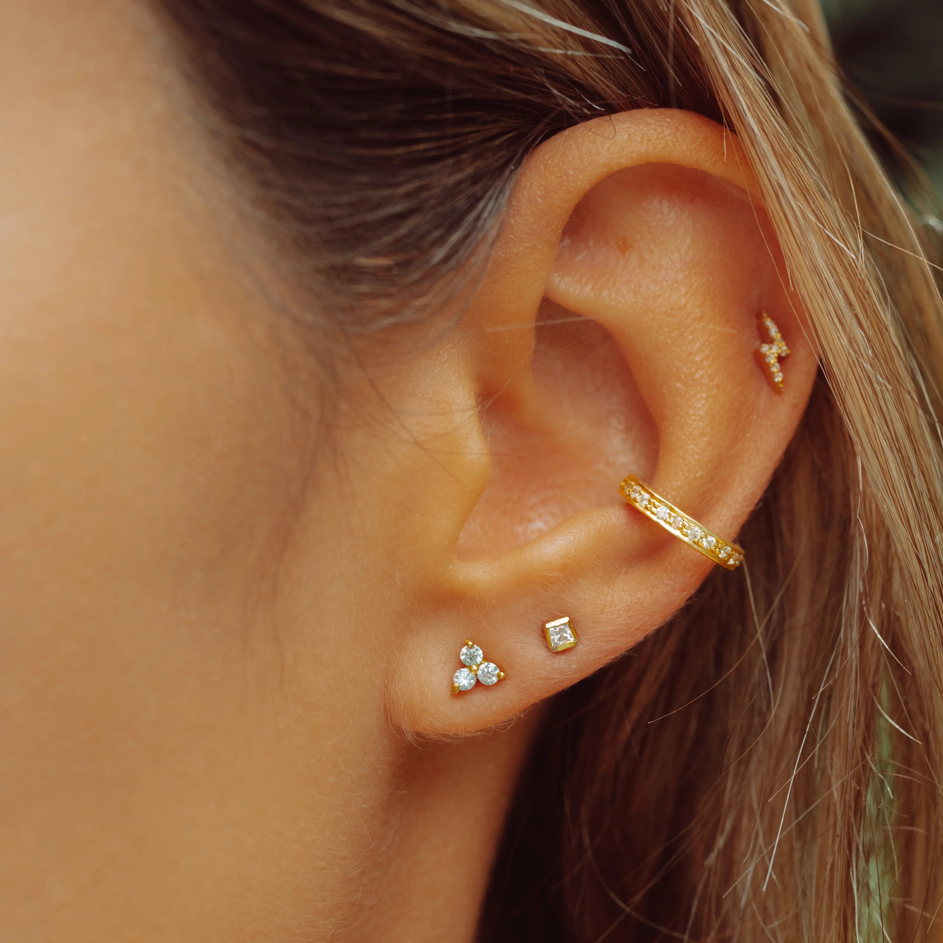 The “Square Stud”. A simple square with a stunning cubic zirconia stone.