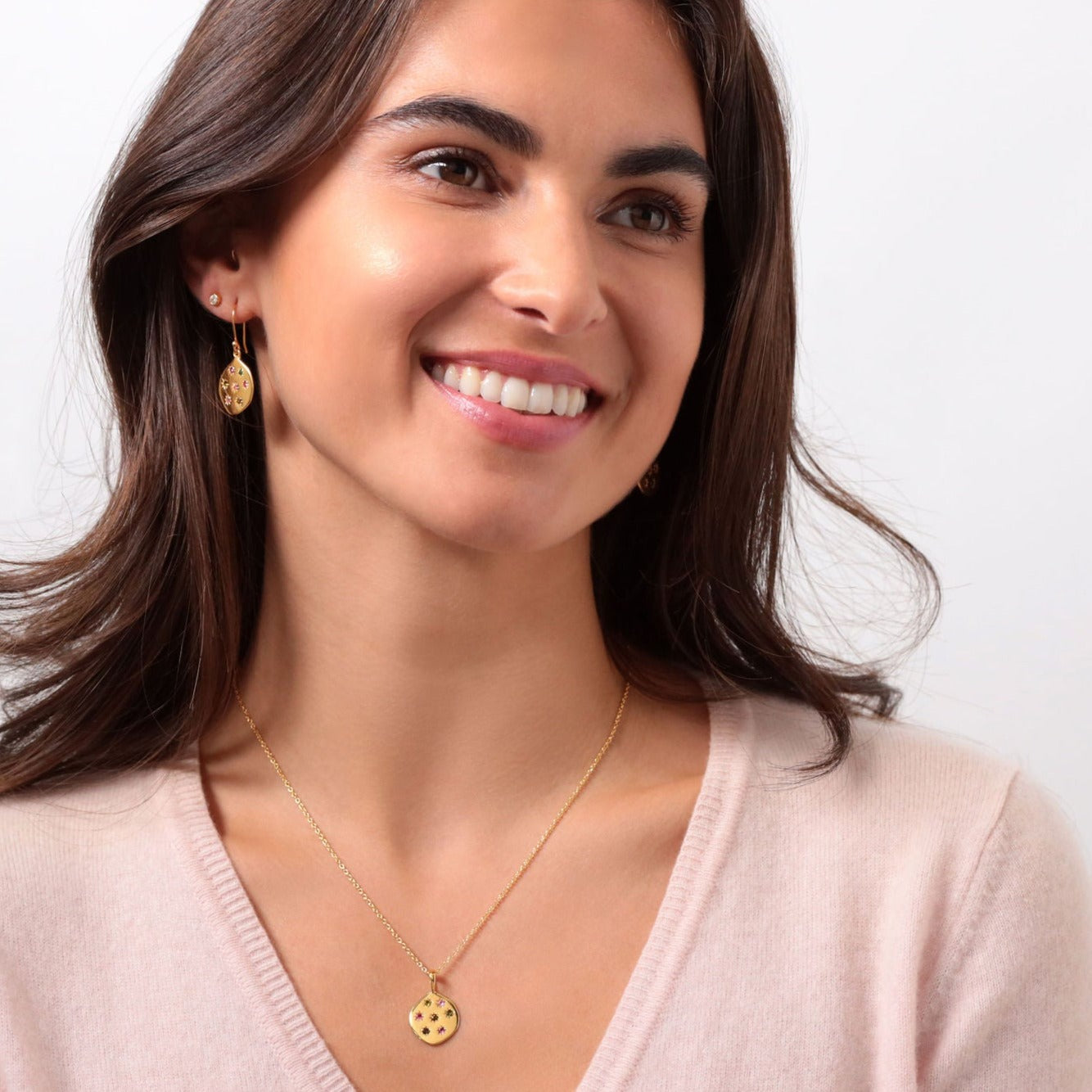 A tactile, organic oval with seven dazzling tourmaline gemstones. An everyday beauty that reminds us of nights spent gazing at the stars. It also comes with matching earrings!