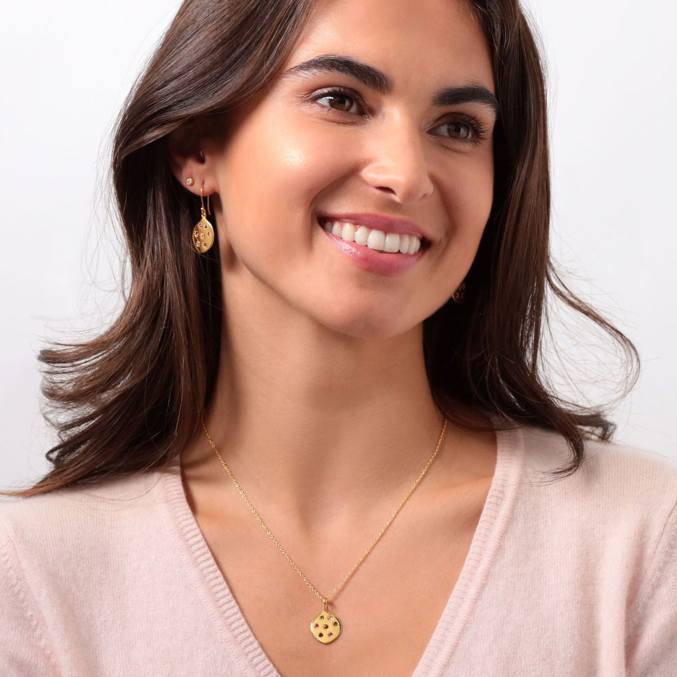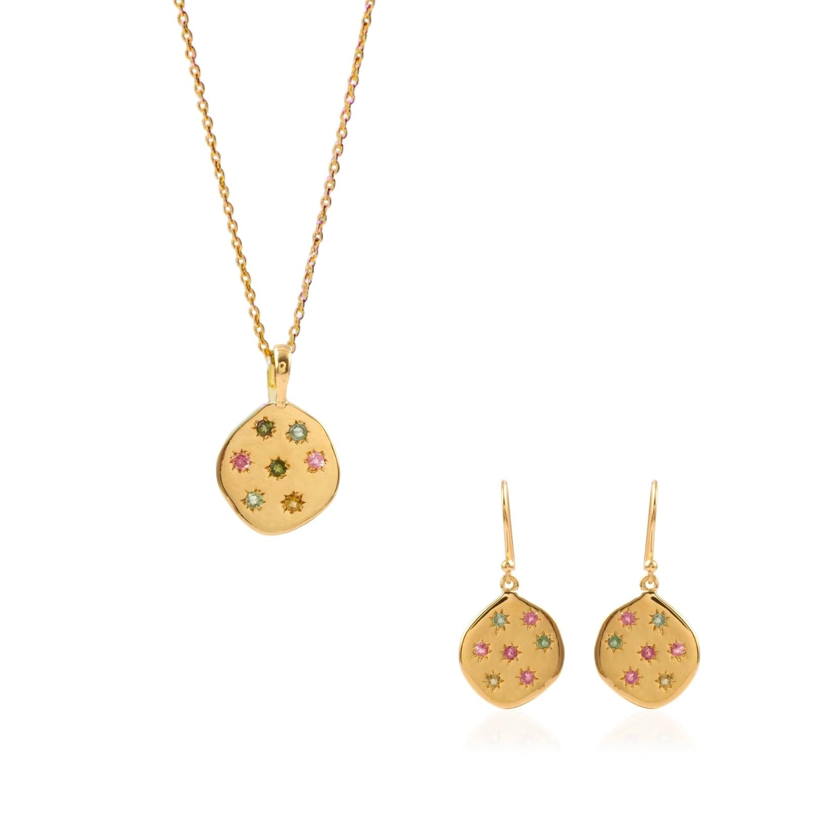 Stargazer Pendant in Gold and Tourmaline with matching earrings