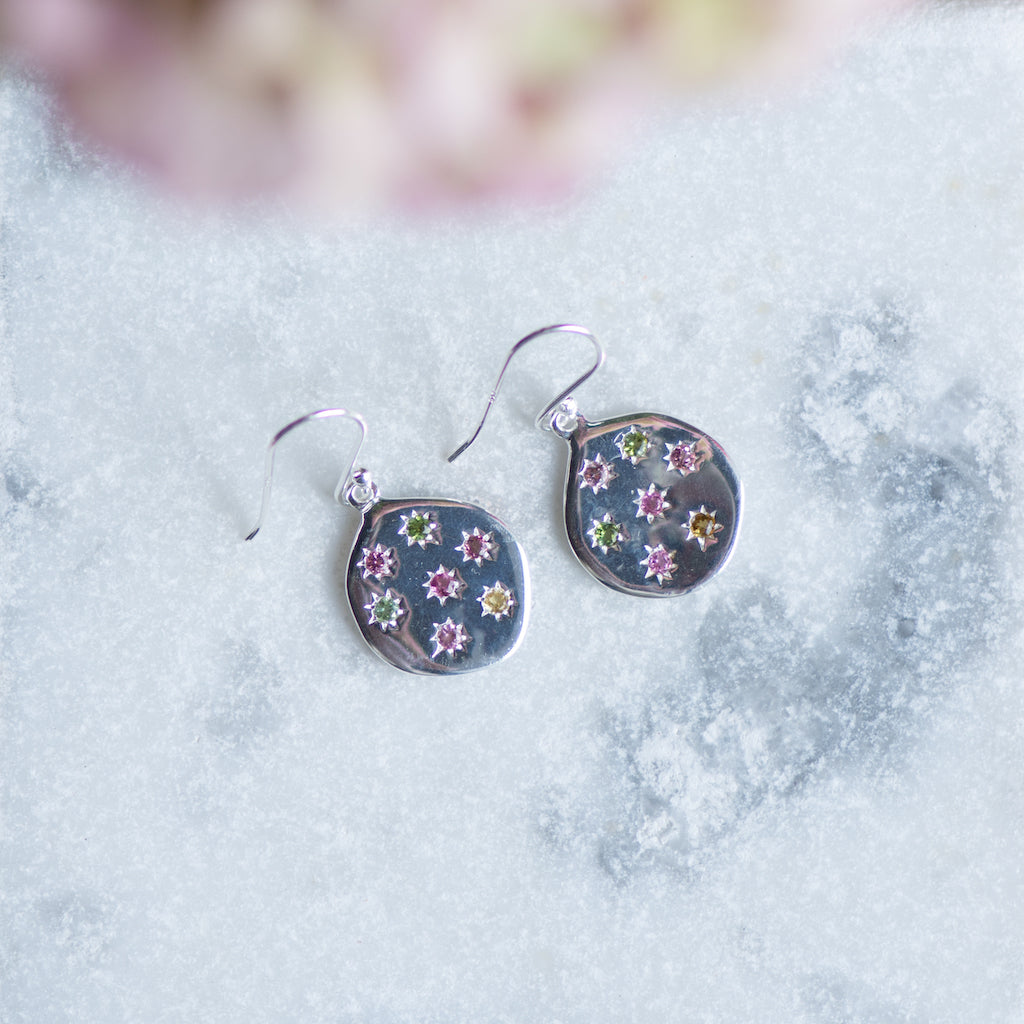 Stargazer Pendant in Silver and Tourmaline with matching earrings