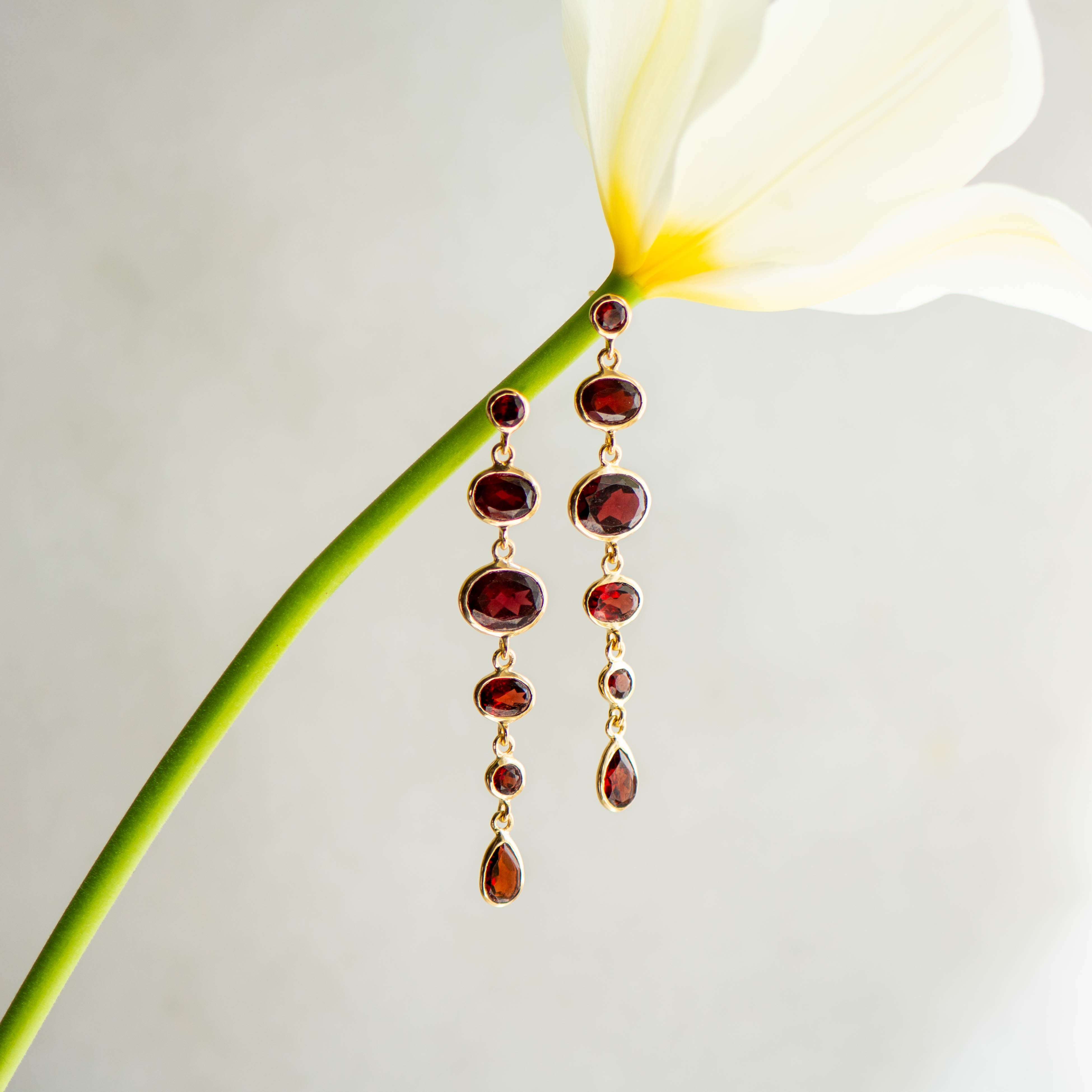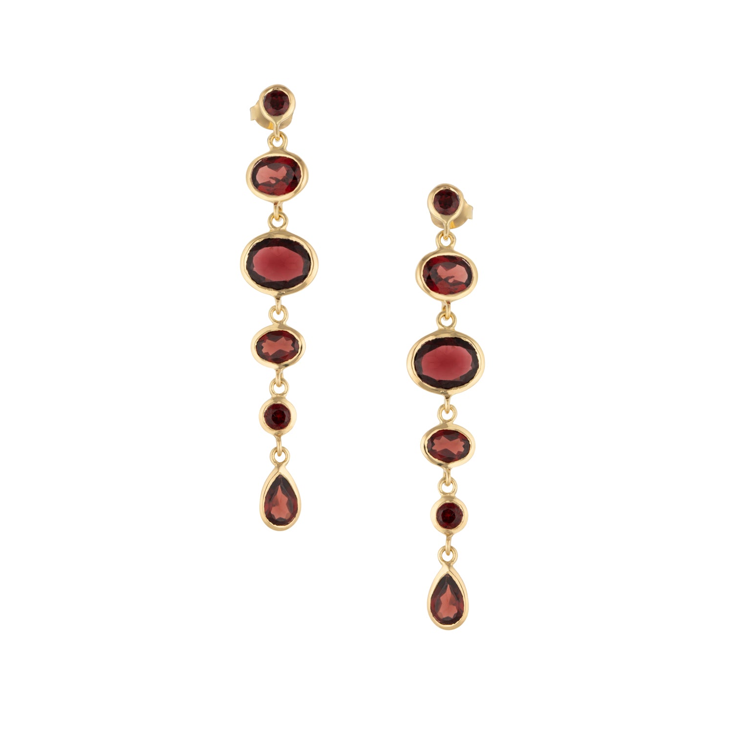 Stud Cascade Earrings in Gold with Garnet