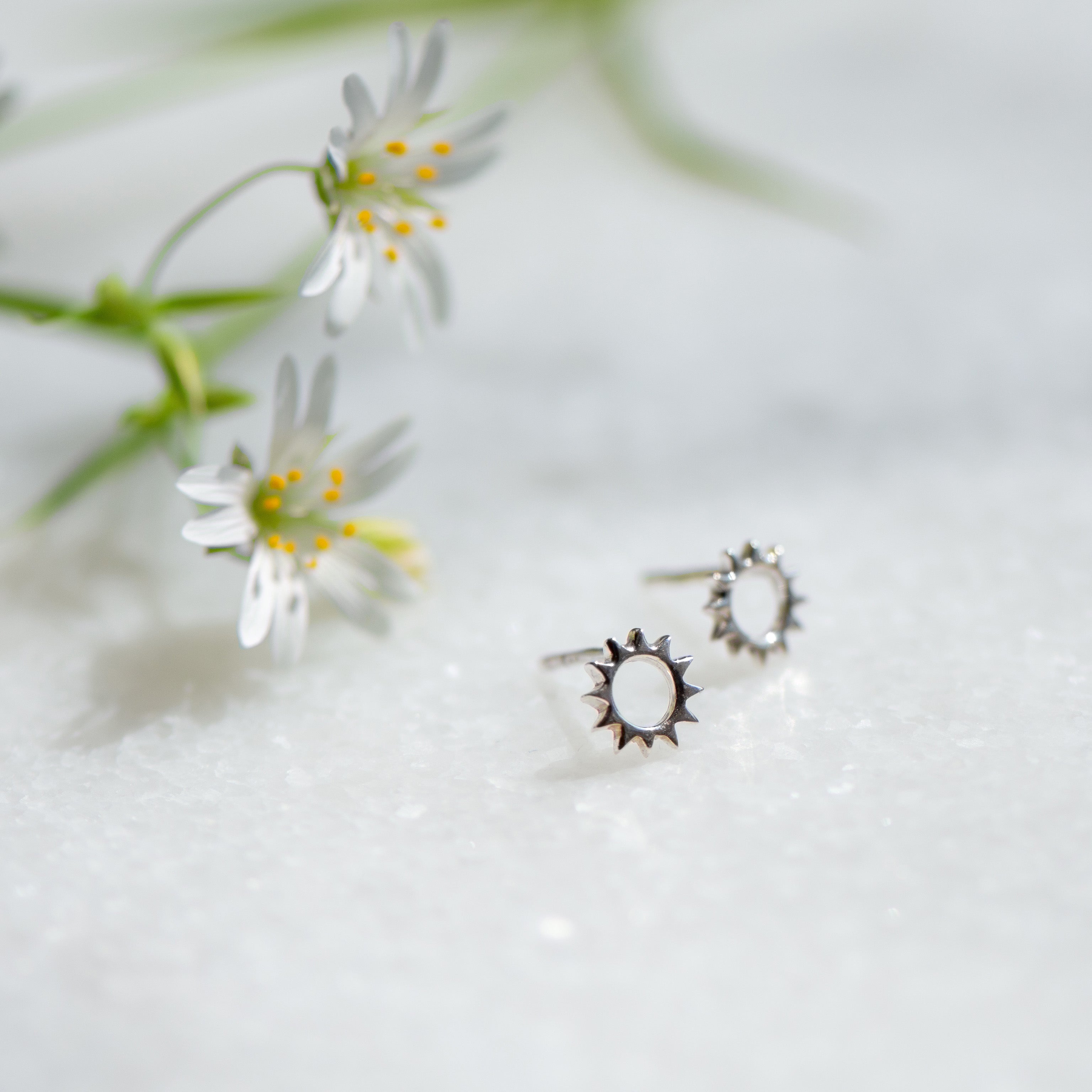 Sunburst stud in silver