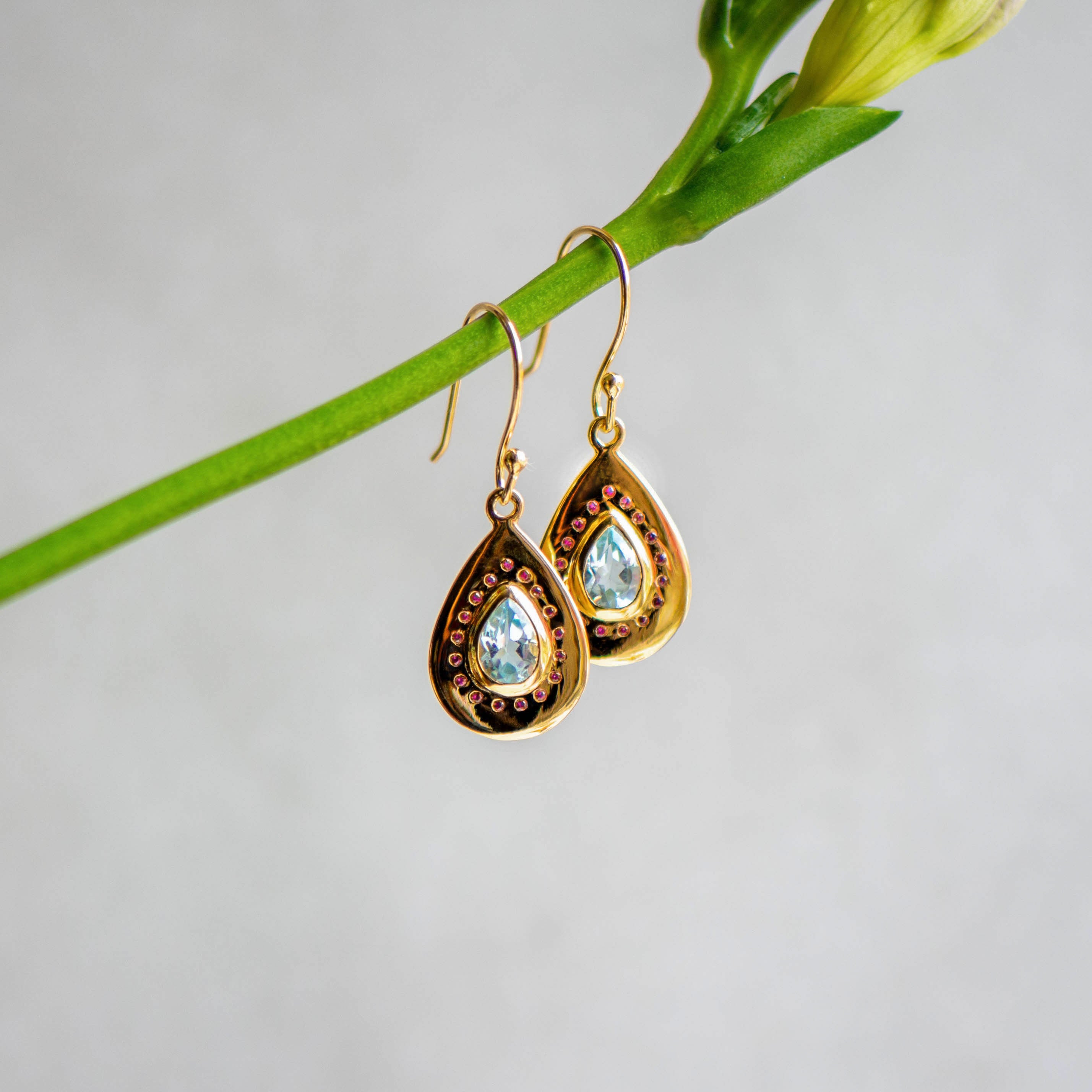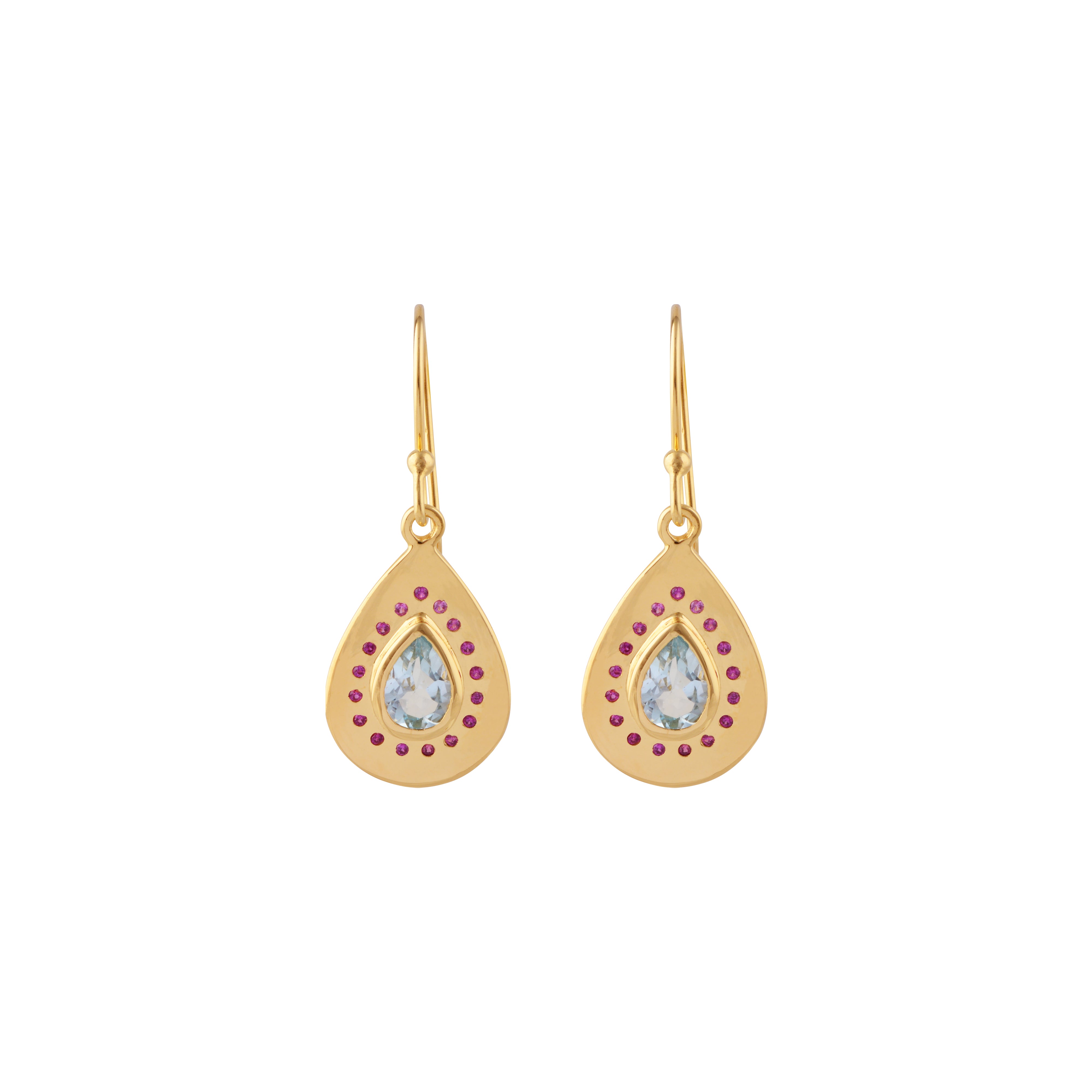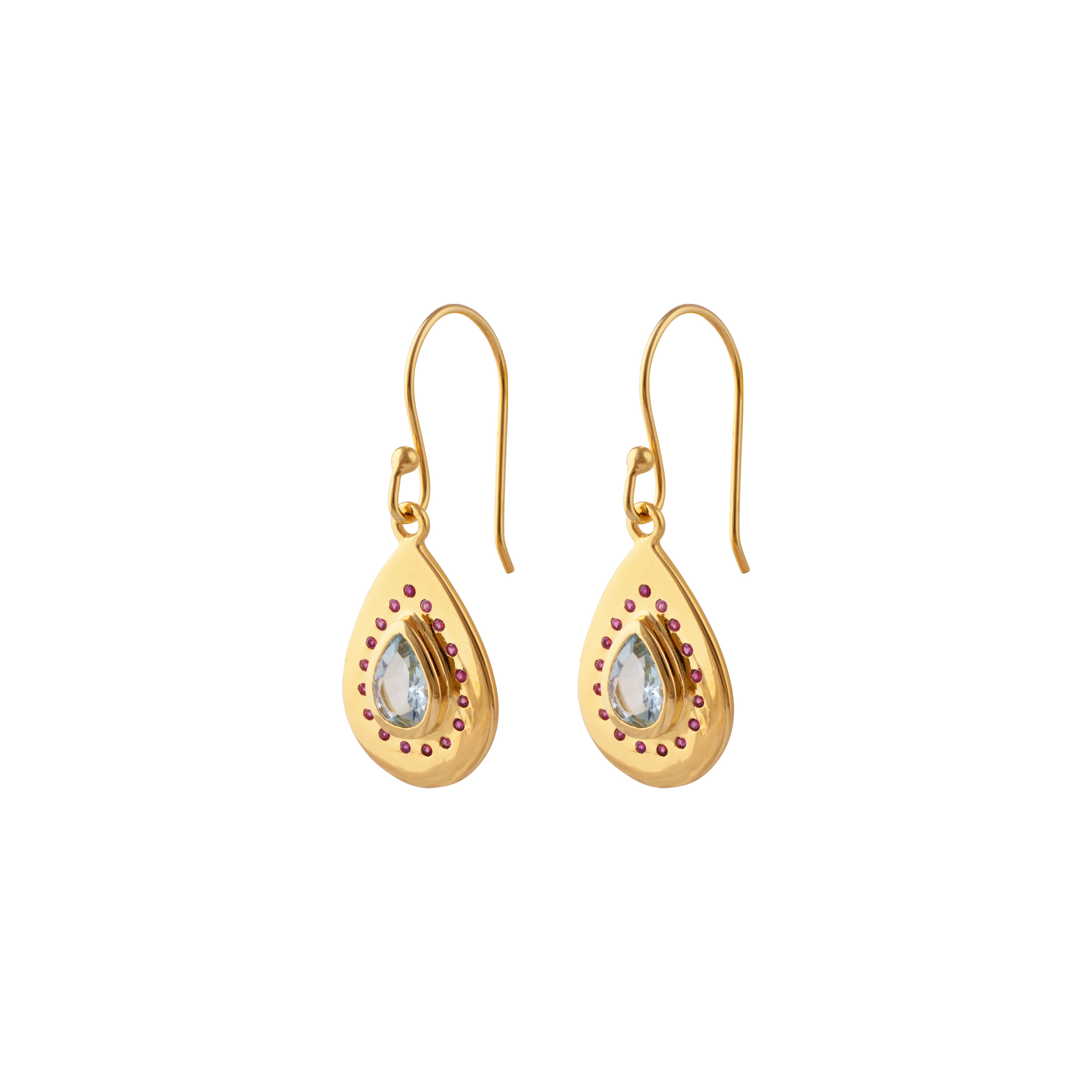 Taj Drop Earrings in Gold with Blue Topaz and Ruby Zirconia